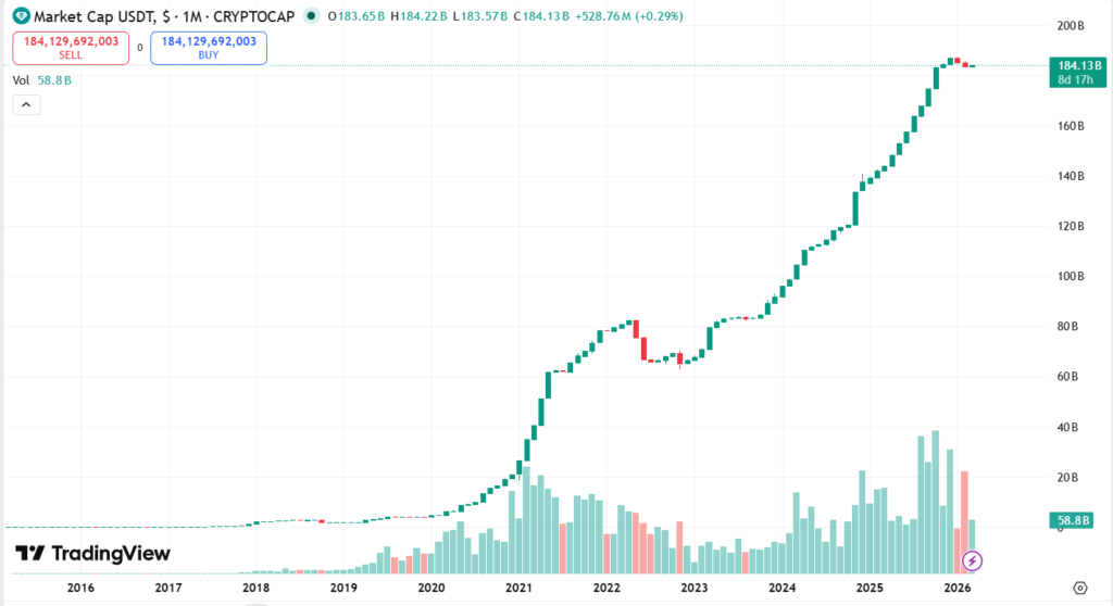 | 3 | Tether (USDT) | ~$184B | ~$1 | ~$1 |