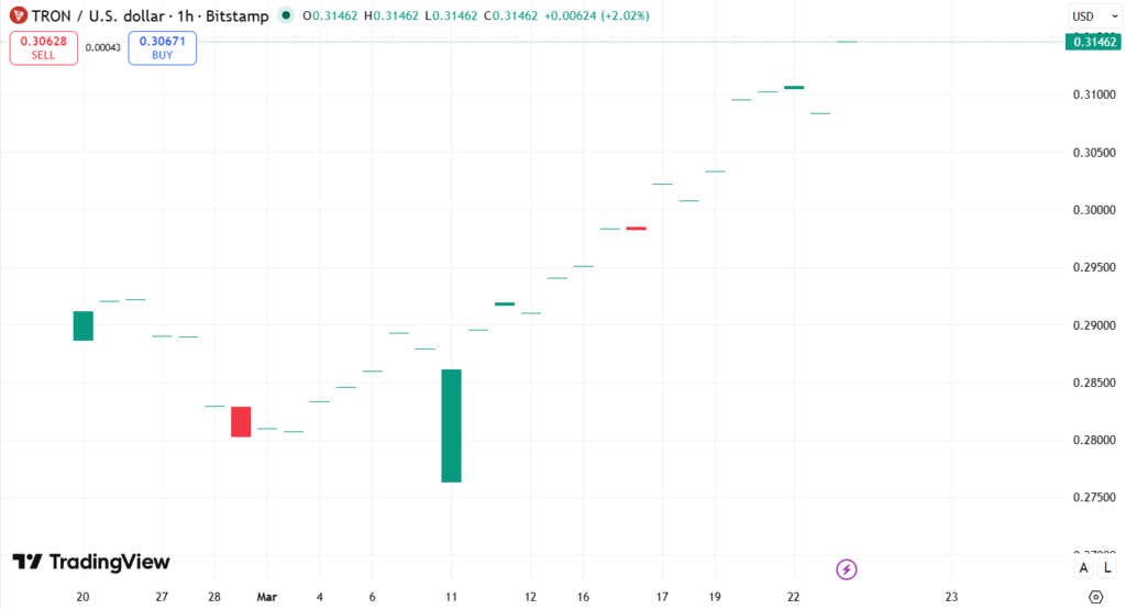 | 8 | TRON (TRX) | ~$29B | ~$0.30 | ~$0.001 |